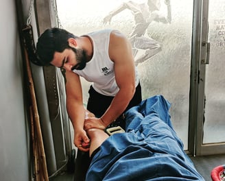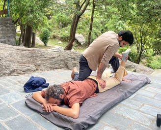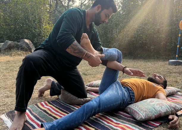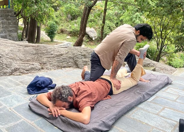 Note: This session is performed fully clothed, with both the client and therapist remaining comfortable and covered throughout. The use of a cushioned mat ensures a supportive and relaxing experience.