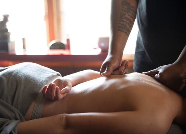 Reconnect with your body's wisdom and inner peace through deep tissue massage and grounding energy work, enhanced by the use of warm, grounding oils. This session utilizes firm pressure and intentional touch to release chronic muscle tension and promote deep relaxation. The oils penetrate deeply into the muscles, providing warmth and easing pain while promoting circulation. Through grounding techniques, you'll feel more centered, balanced, and connected to the earth's energy. This session is ideal for those seeking: